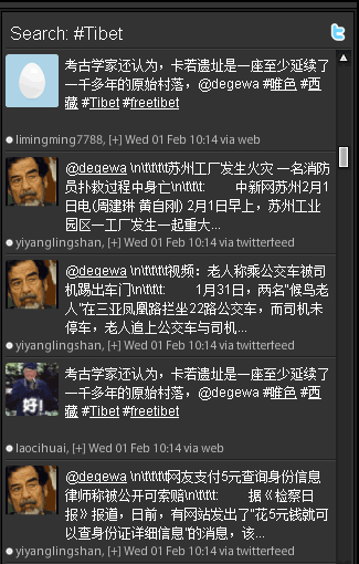 This development is of course no accident.The timing in particular is of interest, coinciding with international outrage at China’s killing of Tibetan protesters, which was being discussed widely on Twitter, which was also serving as a vital conduit for information on China’s vicious attacks upon unarmed Tibetan protesters. The decision by China’s Ministry of Propaganda to effectively censor and undermine such information on Twitter may also be in response to the tremendous work carried out by Tibet activist and supporters, such as those of @tibettruth, who have been hugely active in ensuring the truth is being reported on Tibet and its struggle for independence.