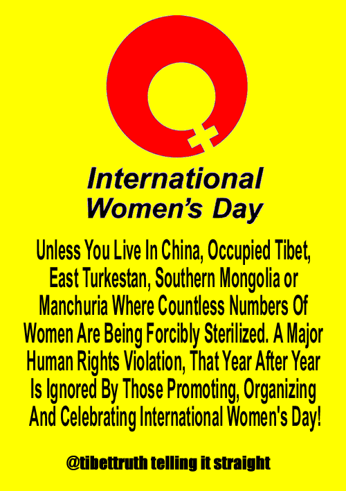 During previous activities to mark International Women’s Day on the 8th March much focus was rightly given to a range of themes. Unfortunately absent from the orchestrated championing of women’s human rights has been any prominent exposure concerning communist China’s treatment of women, and in particular its coercive population-control program. This year’s program looks likely to again ignore China’s sate engineered violence against women, indeed the only visible reference to China on the International Women’s Day website is a trumpeting that this day is a Chinese national holiday, hardly a cause for celebration given the harrowing reality of China’s targeting of women for forced sterilizations.These atrocities grossly violate the principle of freedom of choice and a woman’s right to control over her own body. In occupied Tibet, East Turkestan, Southern Mongolia, Manchuria and communist China women are denied these freedoms and subject to the dictate of a male-dominated regime that inflicts a series of draconian penalties; including financial/mental/physical coercion, forced sterilizations and forced abortions.
