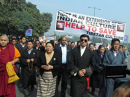 This then is the background, the corrosive forces operating behind the so-called ‘Tibetan People’s Solidarity Campaign’ which explain the words of appeasement from Doctor Sangay, remarks that trample across the common political aspiration for independence expressed by decades of Tibetans protests in occupied Tibet. In light of these circumstances was it any surprise that organizers of the meeting in New Delhi chose not to display on stage a single Tibetan flag, a symbol of Tibetan national identity, was it considered an action too negative for Chinese consumption? Did such considerations equally inform the timorous wording of the orchestrated slogans, which were made available by the exiled Tibetan Administration to participants?