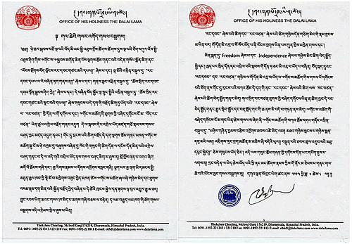 The terms “freedom” (rang-wang) and “independence” (rang-tsan) are two separate words with quite different meaning. In his writings, His Holiness has consistently used the word, “freedom”.