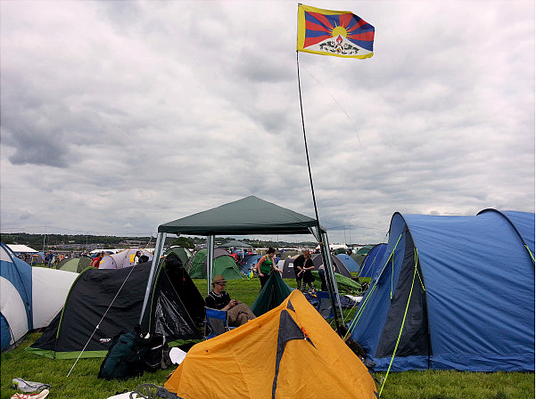 Rangzen (independence) warriors have now reached Glastonbury and set up camp, and here folks flies the very flag which will be making guest appearances throughout the festival. See if you can spot flying high about the crowds during one of the many performances over the next few days and if you do please tweet to our friends @tibetttruth