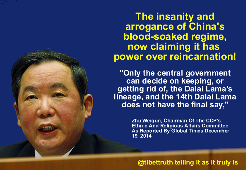 1. The twisted logic of the Chinese Communist Party, much like the Nazi regime would have done if they’d won WWII (IMHO); the world needs to wake up to the threat of such a twisted Power state that still illegally Occupy U-Tsang, Kham & Amdo and currently building up their arms!