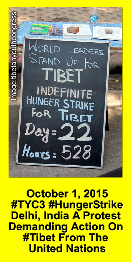 With Ms Tsewang Dolma, one of three Tibetan Youth Congress activists on hunger-strike having earlier today been taken to hospital, the protest continues to demand action on Tibet from the United Nations. Yesterday the Regional Tibetan Youth Congress Wisconsin launched a campaign to phone bomb (September 30) the UN with the demands being pressed by the #TYC3.