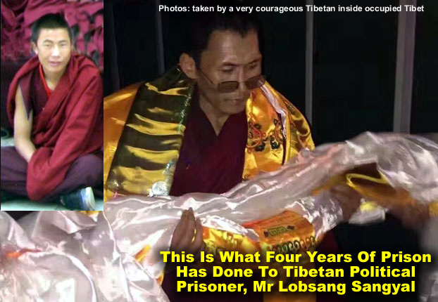 Images showing Lobsang Sangyal before (left) and upon release (main) from a Chinese prison.