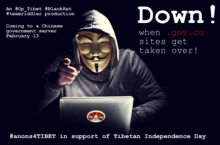 Our amazing team across Twitter have just reported that the anonymous action which operates as #Op_Tibet has released a video statement ahead of Tibetan Independence Day February 13 in which they announced an intention, as a demonstration of solidarity on that day, to strike out against websites of China’s regime.