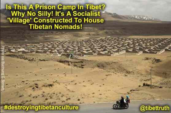Lastly it’s important to be aware that the Chinese tyranny employs a wide range of euphemisms to conceal the dark reality of its illegal occupation and exploitation of Tibet. Take the innocuous sounding ‘relocation’, could be describing a wished for movement to another place, right? Look a little closer and the phrase is nothing more than code for the forced removal of Tibetans into concentration settlements. As we reported previously one of the key aims of China’s regime is to eradicate Tibetan national and cultural identity, the two central pillars of that character is Tibet’s nomadic traditions and its Buddhist and native religions. By a program of of ‘ethnic-cleansing’ Tibetans are denied their self-sufficient and sustainable lifestyle as nomads, bused into ‘socialist paradise villages’ to become dependent and compliant. Such is the harrowing truth behind China’s cynical use of the inoffensive term ‘relocation’!
