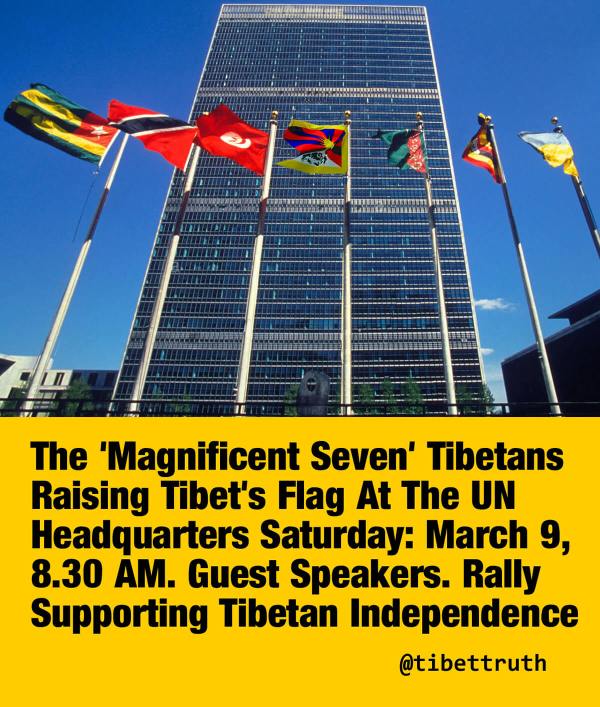 Having endured freezing temperatures and the ever present hazards of traffic since walking from Philadelphia to New York City, the magnificent seven Tibetan marchers for Tibet’s independence will be arriving outside the UN building at 8.30 AM. Later in the day there’s a rally including guest speakers; Sonam Wangdu, Jamyang Norbu, Dorjee Tseten and Tseten Lhagyal, all strong voices for Tibet’s national freedom. If you can make it do come along and show your solidarity.