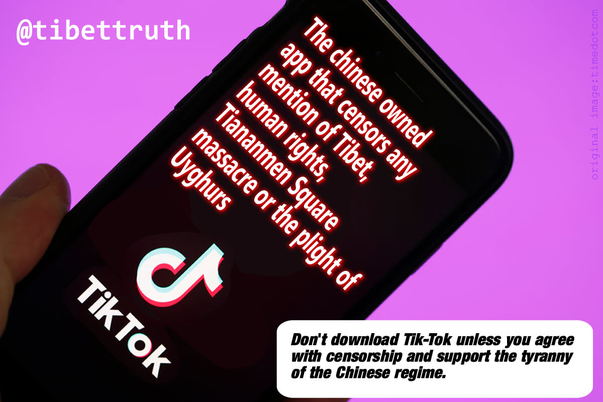 There’s many simple actions to be taken in support of Tibet’s cause for national freedom and human rights, here’s one right here. Don’t use the TikTok app on your device, as the Chinese company is in bed with China’s regime in banning mention of Tibet. Any references are censored, as are subjects such as the 1989 slaughter at Tiananmen Square or ongoing persecution of Uyghurs. Don’t choose the censors, boycott this app and let your friends and family know.