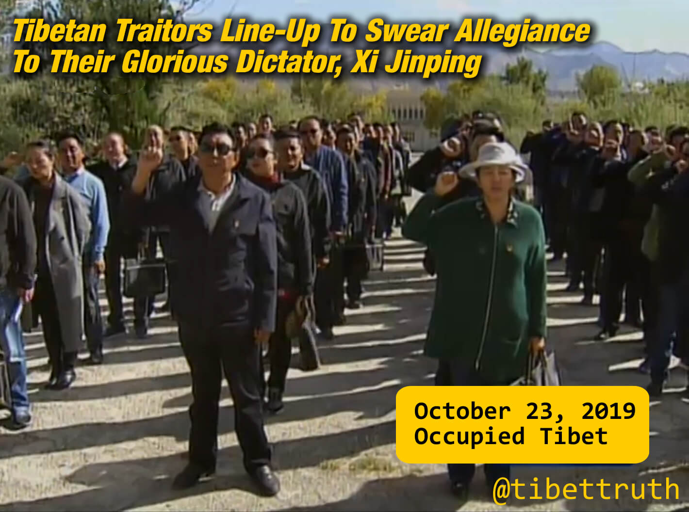 The loyalty of those Tibetans actively supporting the Chinese regime is rewarded with a certain political and local status, fringe benefits on housing and travel within occupied Tibet and a regular salary. Yet their dedication and obedience to the foreign occupier who so brutally suppresses Tibetan culture and identity is ultimately not trusted, and valued only for the furtherance of the violent policies and dogma represented by Xi Jinping. These sad and treacherous Tibetans are no more than disposable puppets, whose position of security is utterly dependent on their submission and fanaticism. In that regard they are the ideological foot-soldiers of China’s oppressive rule in Tibet the regime. In another word, traitors.