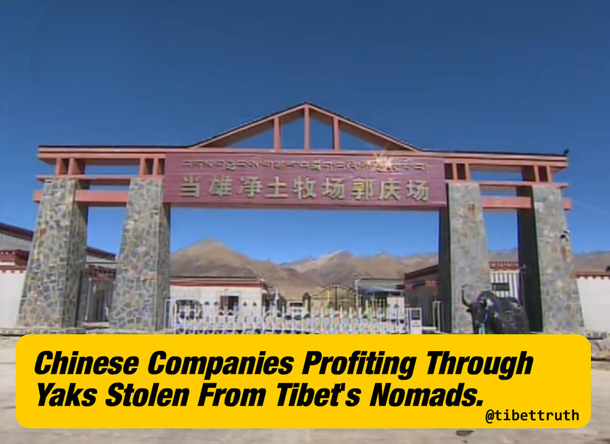 Not content with destroying the lifestyle of Tibet’s nomads the Chinese regime and equally corrupt companies are profiting from the theft and sale of Yaks and related products. As always it is the Tibetan people who are exploited. With those detained in newly built ‘socialist paradise villages’ having to buy Yak meat, sourced from herds which once had been theirs for generations!