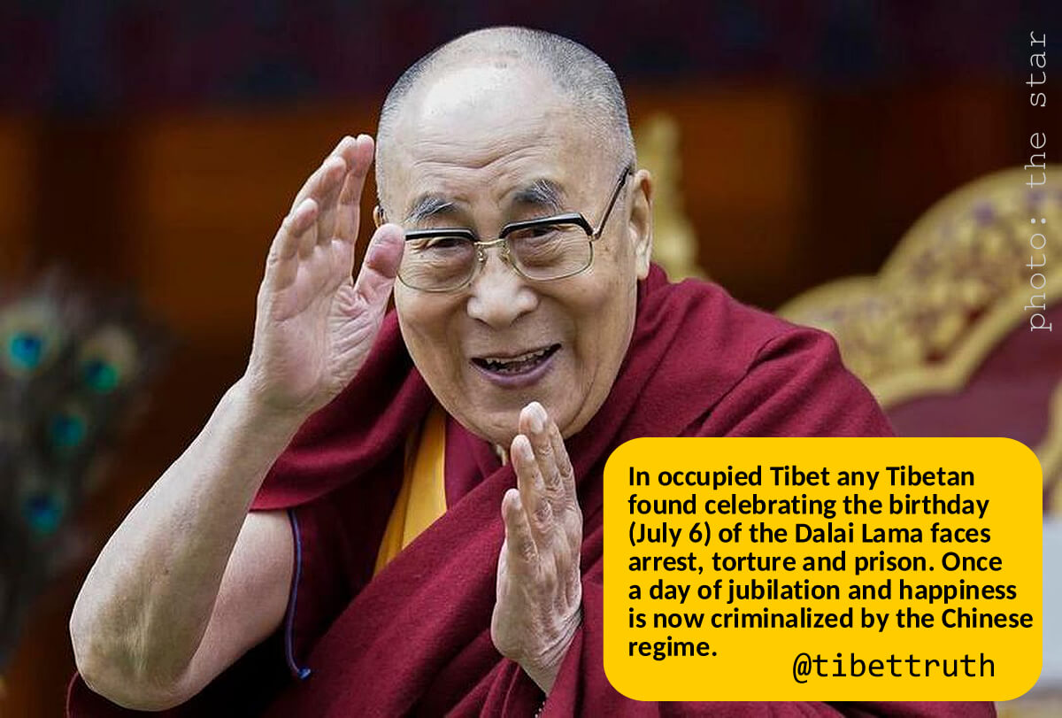 Tibetans and friends of Tibet are today celebrating the birthday of the Dalai Lama. Yet several million Tibetans will not be. This is because to do so will risk extreme punishment by the Chinese regime. who have ordered the the people of occupied Tibet to reject their beloved Buddhist leader in favor of Xi Jinping.