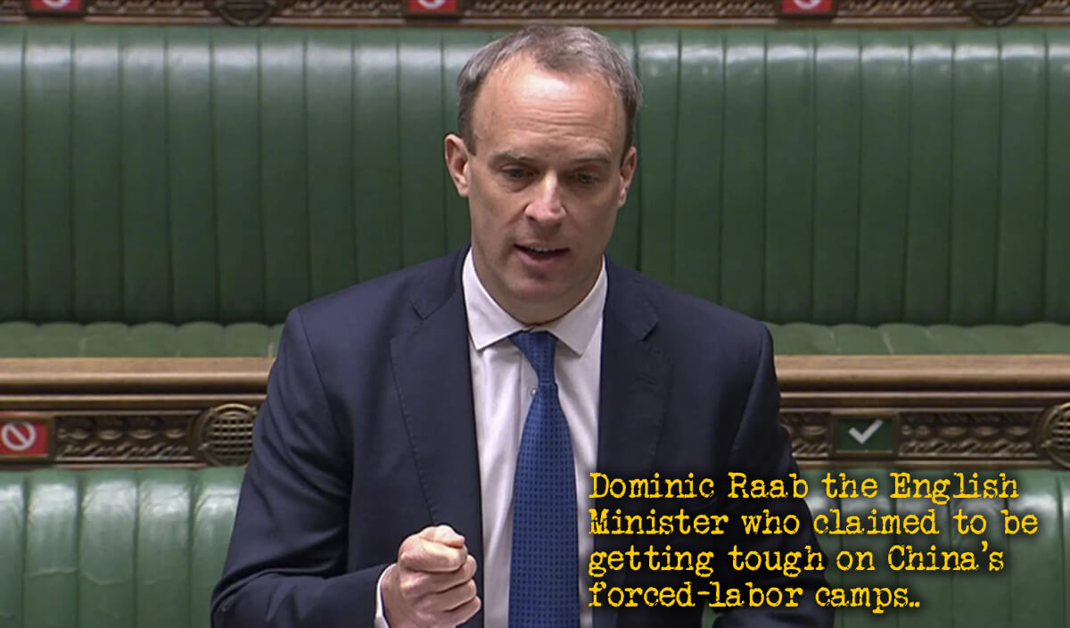It is, of course, a matter of fact that the region is a huge producer of cotton and it has become increasingly apparent and well documented that slave-labor is used in that production.Which returns us to the subject of medical protective clothing and equipment. Did the British not realize that a major component used in the manufacturing of such products is cotton? Surely either Matt Hancock or Dominic Raab stop to consider where the source of a government backed Chinese company would source their materials from when producing PPE items? Maybe they asked the Chinese where the cotton used in such items was from? If so they would take credulity to a whole new level if believing any refutation that the cotton content was not from the very region cited by the UK authorities for housing forced-labor camps!